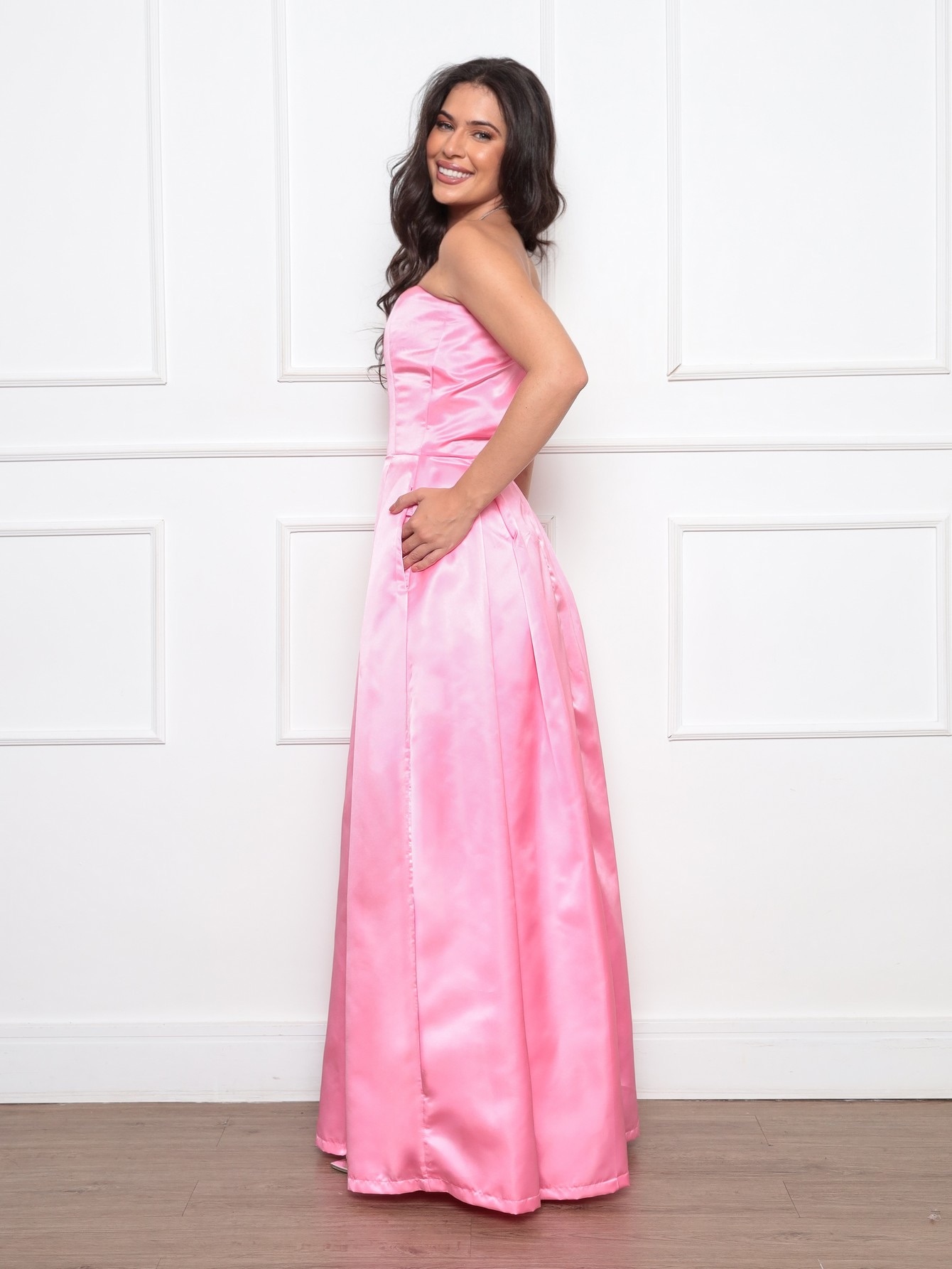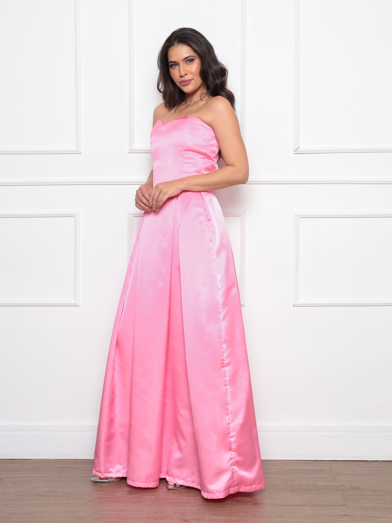 vestido de tafetá rosa